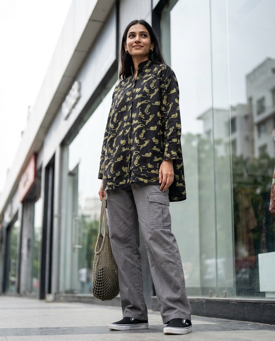 Black Cat Print Shirt—