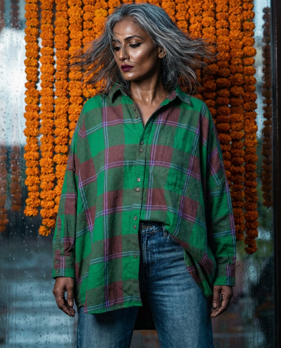 Emerald Check Oversized Shirt—