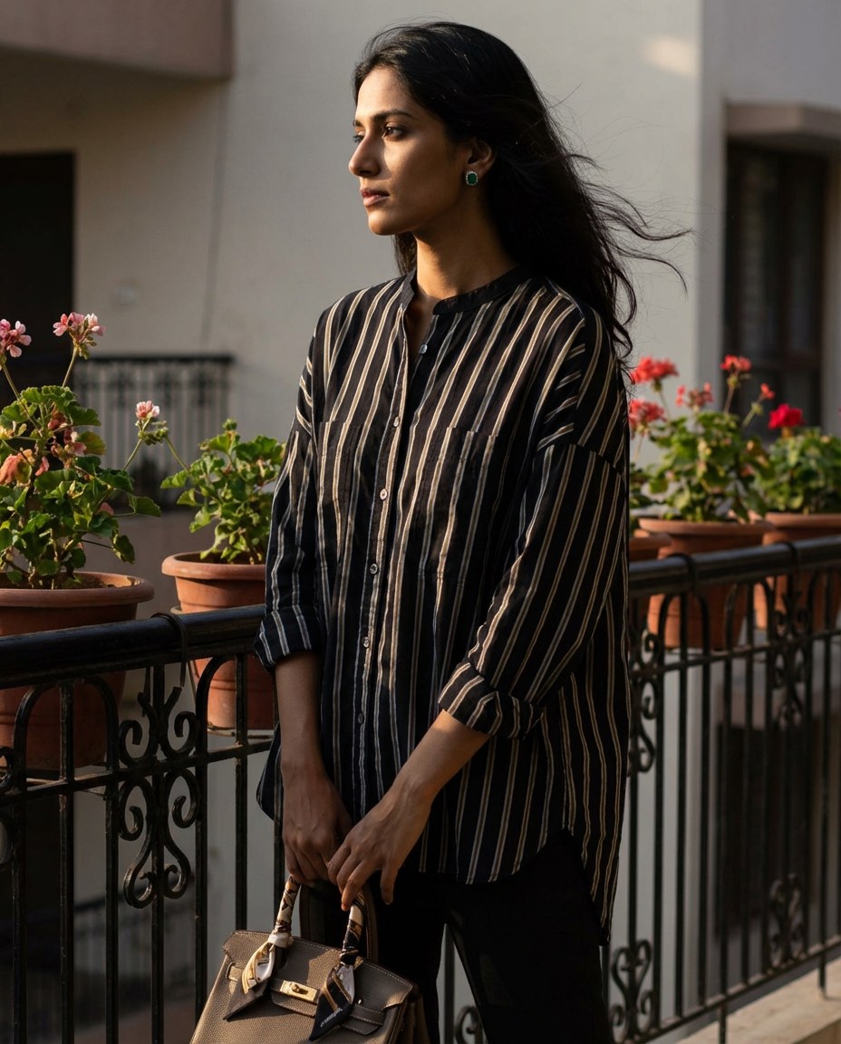 Midnight Stripe Oversized Shirt—