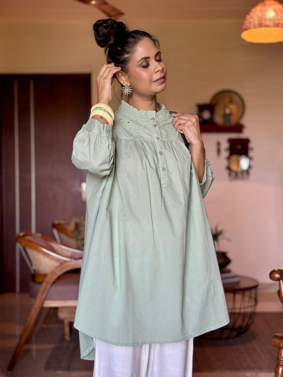 Sage Eyelet Yoke Tunic