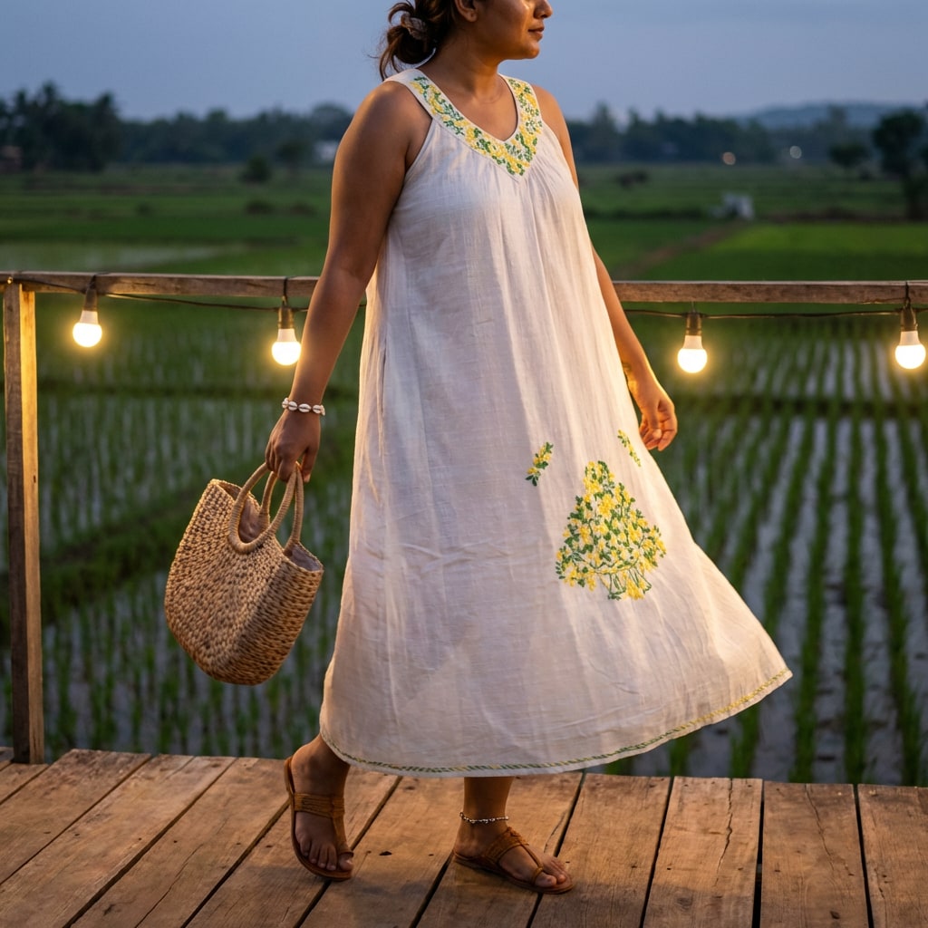 Ivory Floral Embroidered Dress