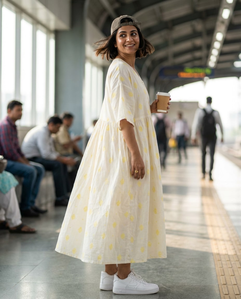 Ivory Lemon Dot Dress
