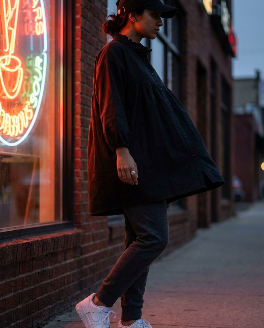 Oversized Black Tiered Dress