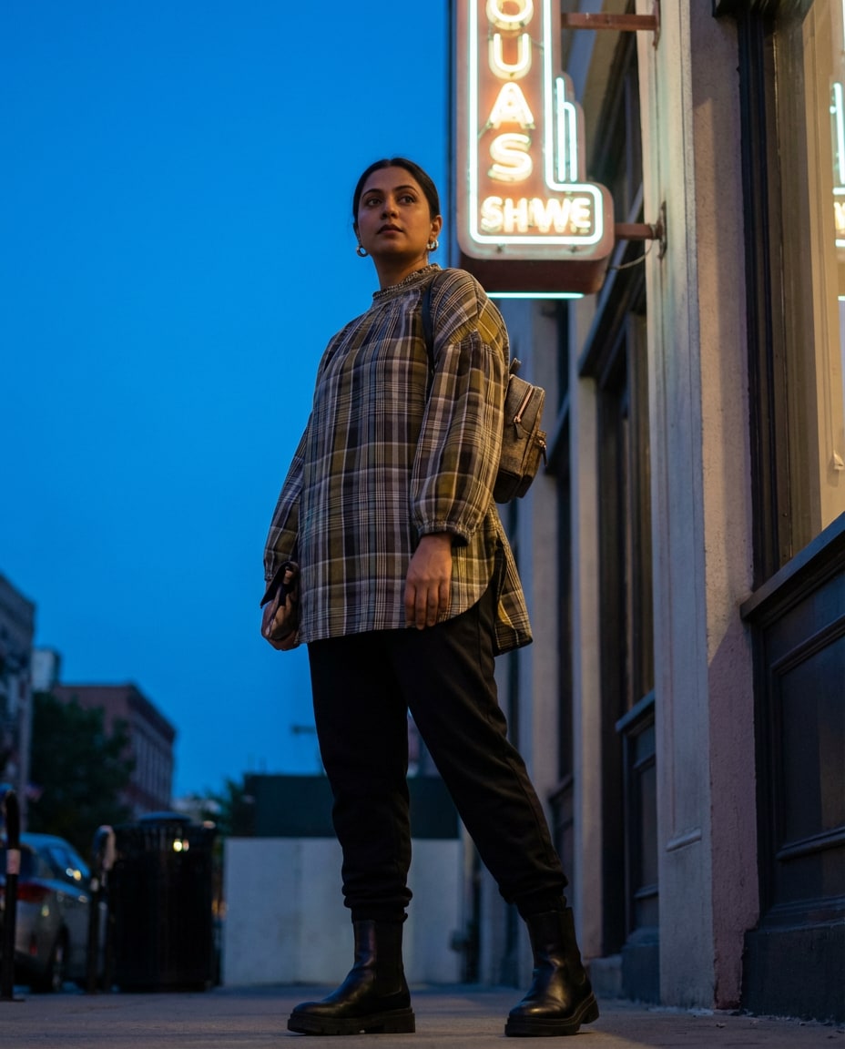 Olive Check Oversized Top